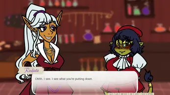 Brew and Me is a short kinetic eroge featuring a trans elf woman with a gender-questioning goblin in a slice-of-life fantasy. It contains 6000+ words, 7 CGs with alts, and partial voice acting.