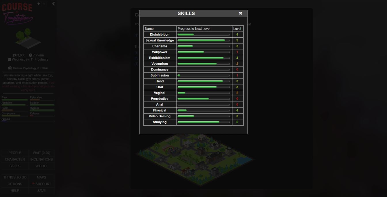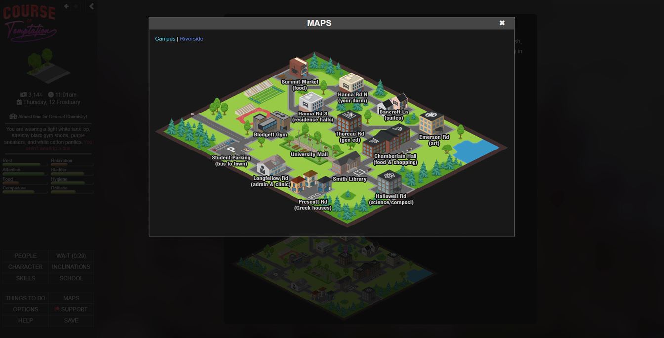 Course of Temptation is a detailed adult college life simulator. It’s text-based and runs right in your browser.