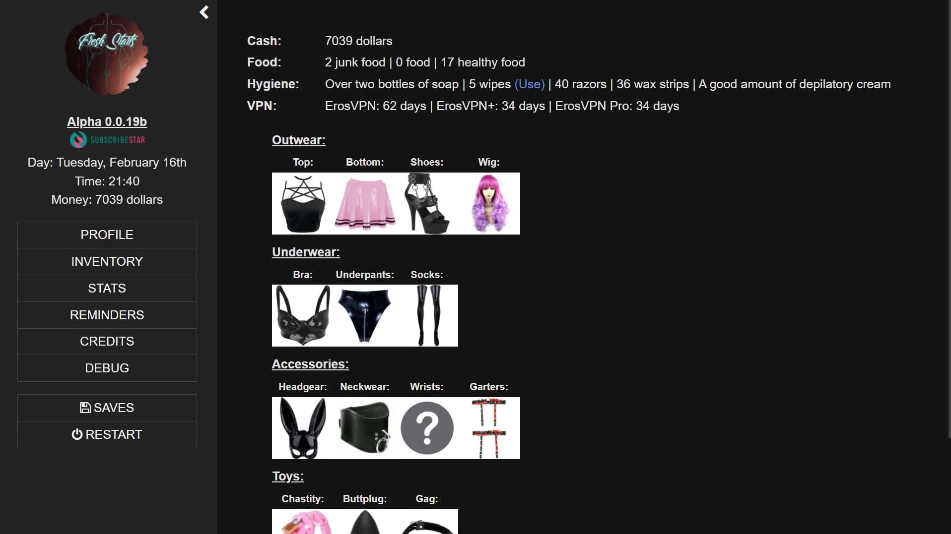 Fresh Starts is a game where you finally move away from your home town to the big city, but Hutinberg is an unforgiving place and you might need to do… immoral things in order to make your place in the town. To what lengths are you willing to go to stay in the city? Will you stay true to who you are, or will you change to try to fit in? Only time will tell..