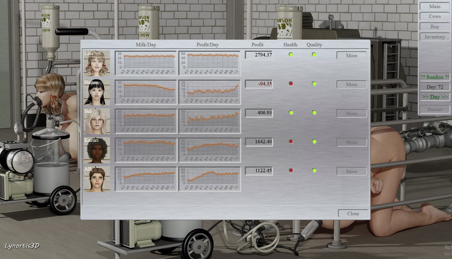 Start you own milk farm business. Carefully adjust daily doses of hormones, food and exercise for the cows to produce lots of high quality milk and make enough profit to buy additional cows, slaves and equipment.