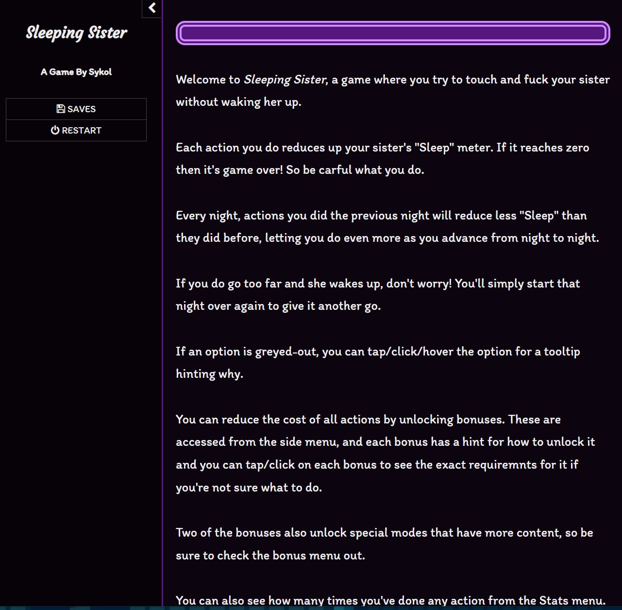 Sleeping Sister is a text-based erotic game where you try to touch,