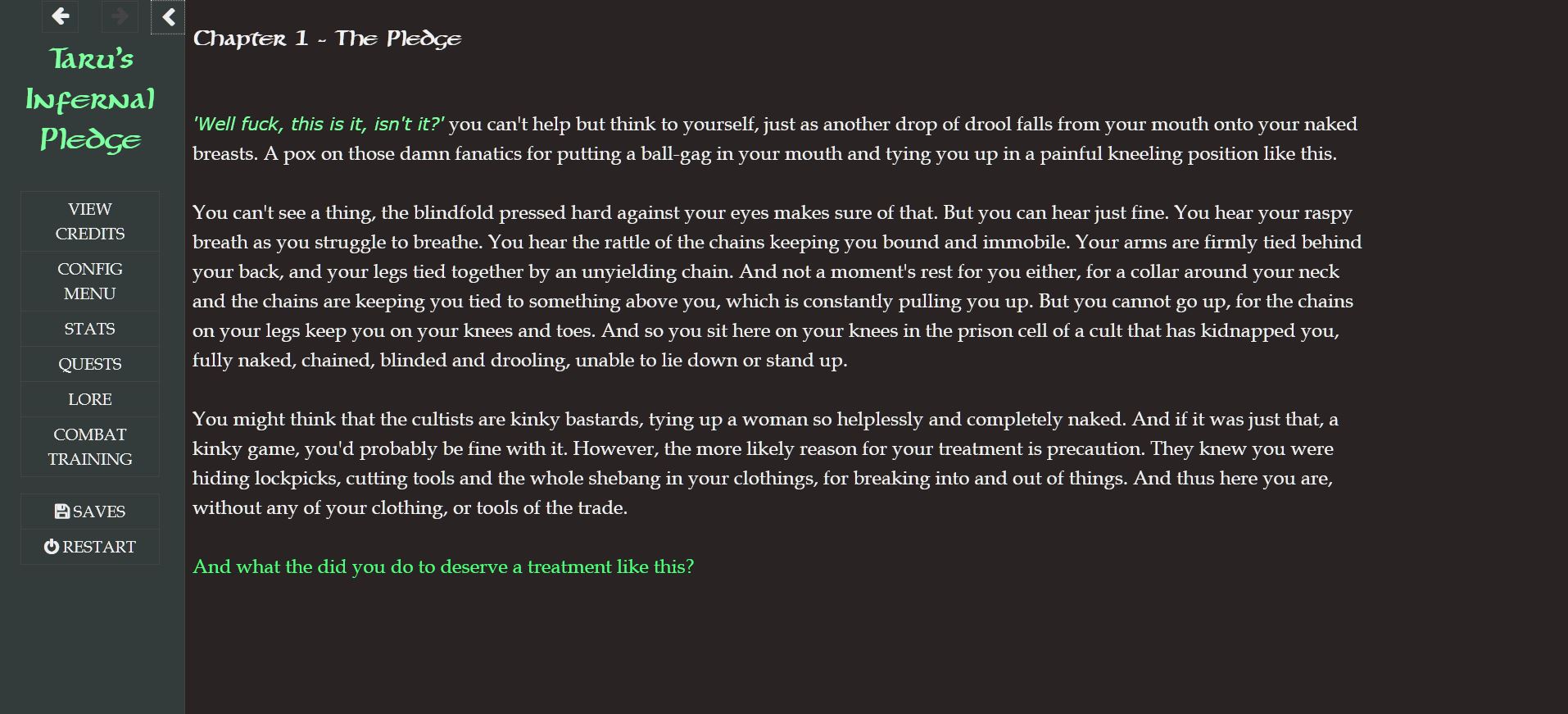 Piru, the 5th archdemon of hell has been trying to tempt Taru into a deal with him for many years. Now, in order to escape the cultists, Taru finds herself finally pledging her body to the demon. The demon’s demands make her head spin…