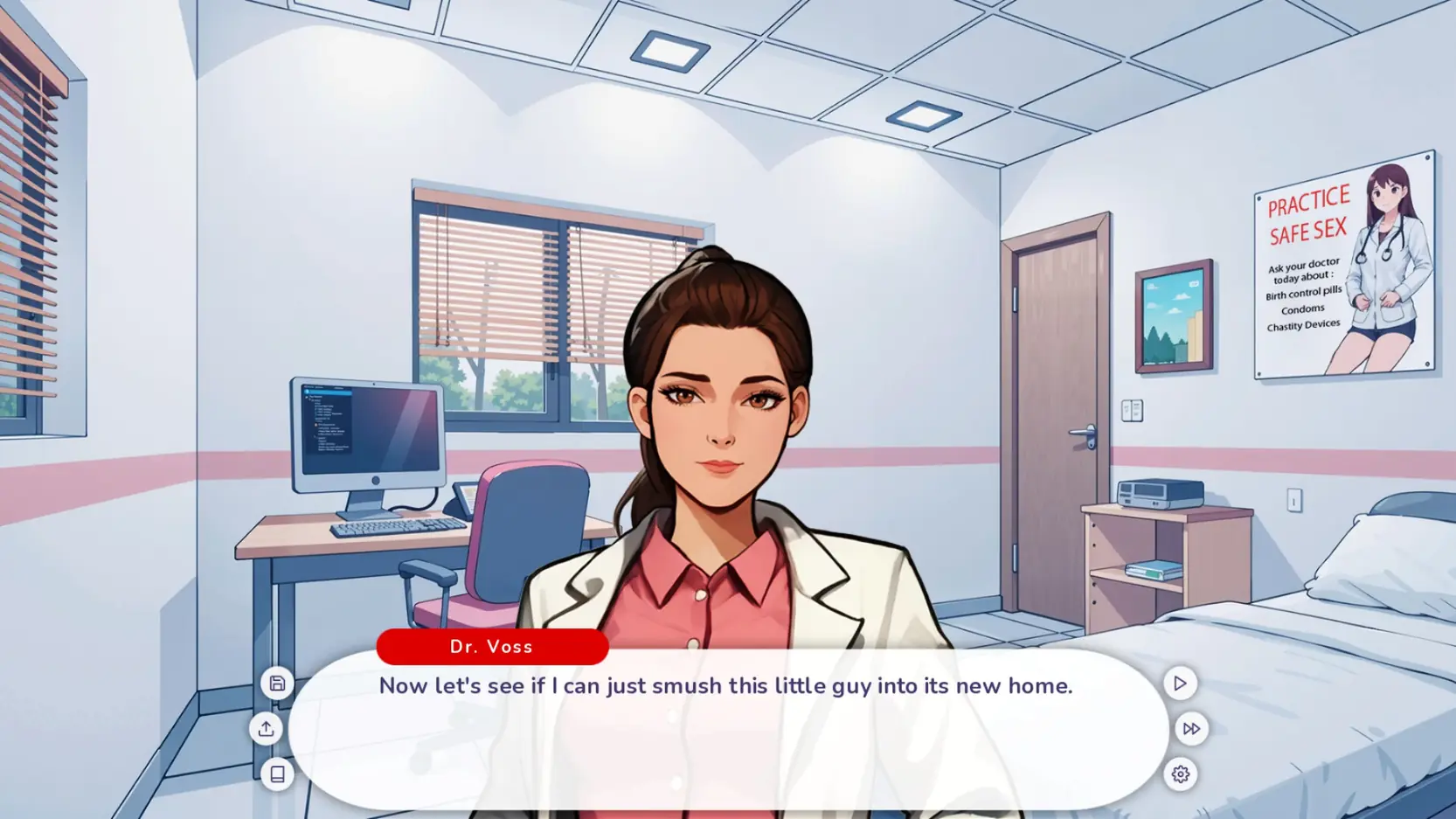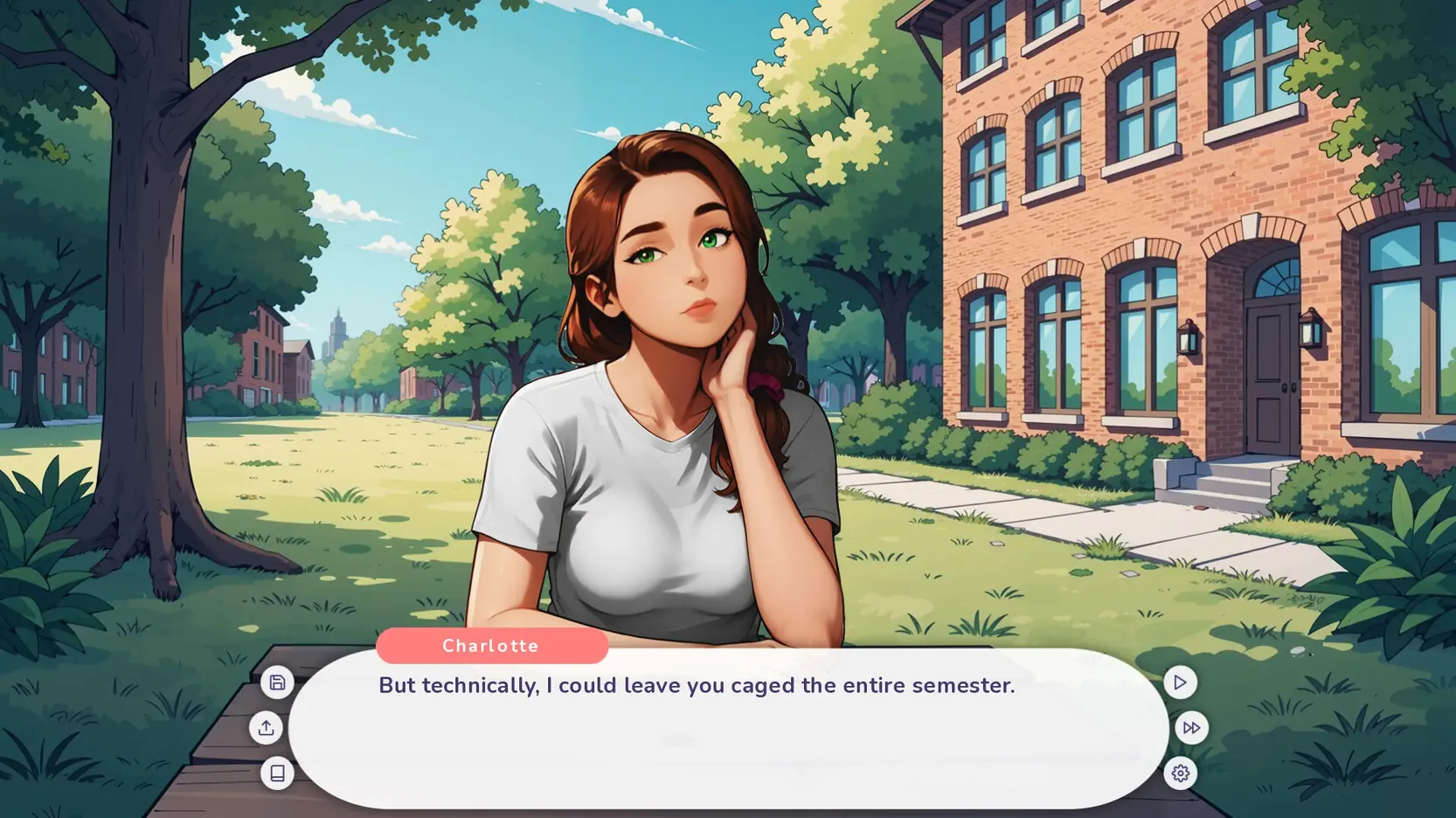 An adult visual novel where you play as a college student who gets locked in a chastity cage in exchange for tuition. Your cute new roommate has complete control over your tiny prison. Navigate your first semester at college by balancing your building frustration with making her happy.