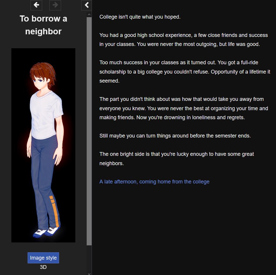 You play as a down on his luck college dude who isn’t doing well in classes. The one bright spot is that he has three good looking neighbors. One day he receives a stone of possession and it seems natural enough to try it on his neighbors. Can he resist the allure of the stone, and the changes it causes in him?
